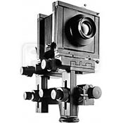 Tripod: There is no hand holding of large-format cameras. Despite what you've seen in the movies (newspaper men at a press conference, etc.), if you want any depth of field, you'll need a tripod to steady the long exposures you have when the lens is stopped down. A good heavy tripod is best (minimizes vibrations), but even a light one will do if you are careful. With a camera as large as these, wind is the enemy. It doesn't take much of a gust to shake the camera, but you'll soon learn where best to stand to block any gusts, and how to look into the wind and recognize gusts heading your way (tall grass is our friend). Accessories: