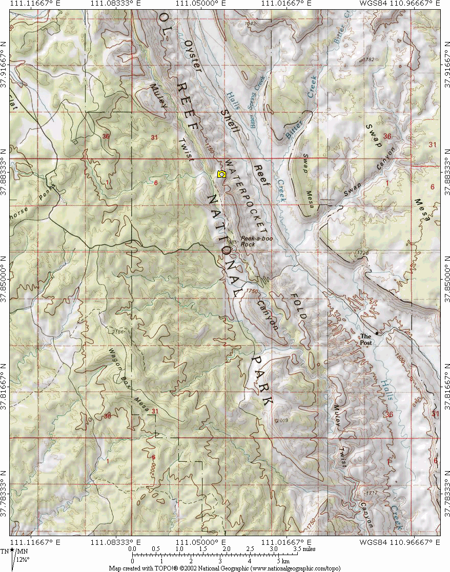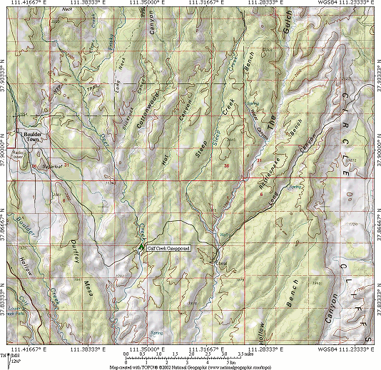 article by Schemeker on hiking in the area Books and maps: National Geographic Trails Illustrated Map 710: Canyons of the Escalante *Note: You should consider this article a first draft. I have only spent about three weeks in the area, and there is much more to explore. This spring and summer (2003) I'll be spending a few more weeks there, and I'll update this article then. |