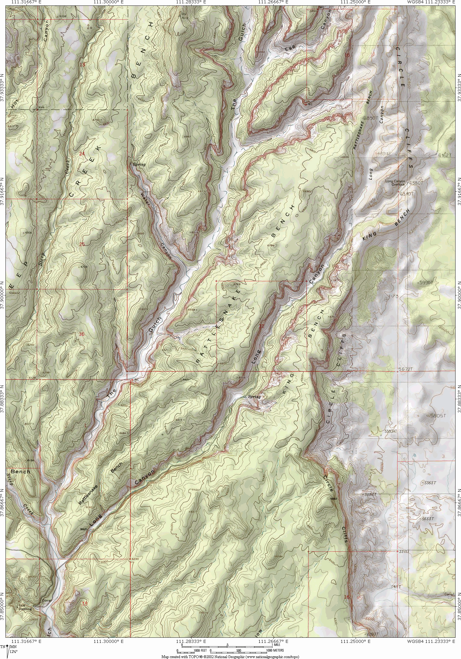(nice evening views of the well-defined sandstone cliffs), in the Grand and