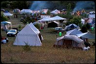 Hugh & Lynett's tent with their Shih tzu head sticking out the door. The shield with the bull on it is Master Chiddiock the Younger's of Calontir. Viewed 2422 times, 0 Comments, 138 KB. |