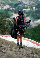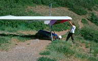 Checking the balance of the glider before launching, Squaw Peak, over