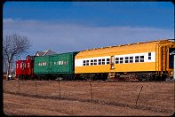 Hendricks MN barbershop (closed, shot through front window). DM&E engine.