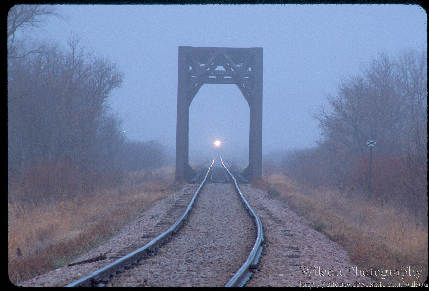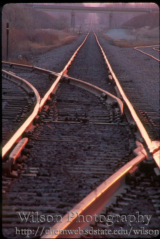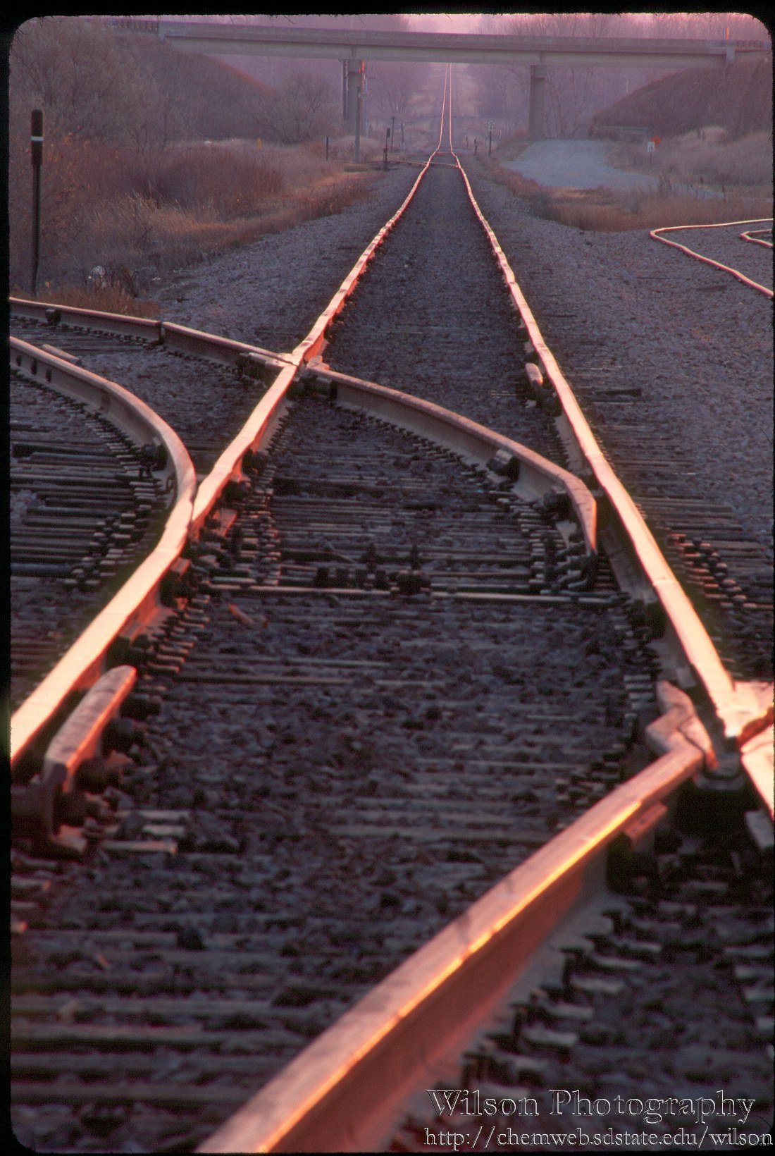 Tracks illuminated by the dawn, DM&E crossing 22nd