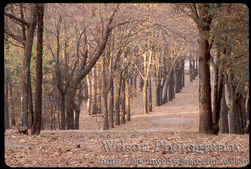 Leaf-sweeper art, Oakwood Lake State Park, Bruce SD.