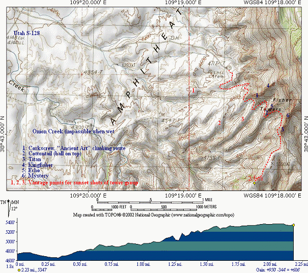 them. The Towers lie at the end of a 2.5 miles rough but passable dirt road (the road does cross one wash, so