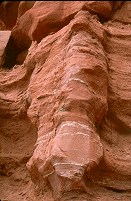 brick-red color of the rocks. It's actually a soft sandstone (mudstone of the