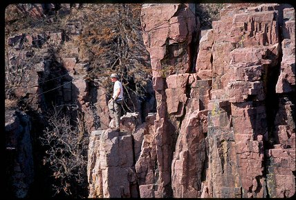 description = Photos of a guy named Travis practicing a traverse in Palisades State Park.
