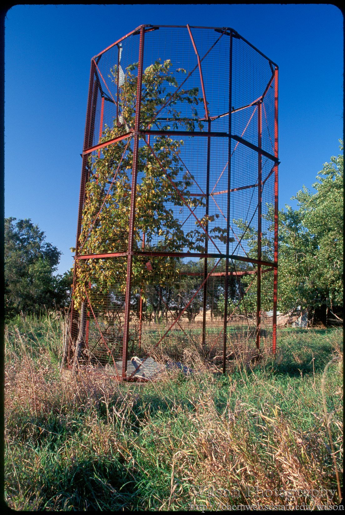 description = Tree growing in old corn crib