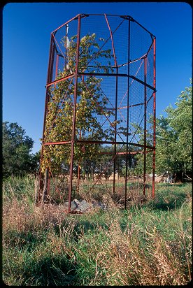 description = Tree growing in old corn crib