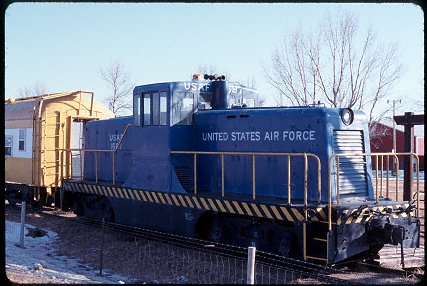 description = An old Air Force switcher, used to tow visitors around a loop in old passenger cars (steam and an old Alco switcher are also used here).