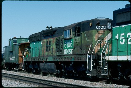 description = A great-looking old SD9 pulling a quarter-mile consist of new rails.