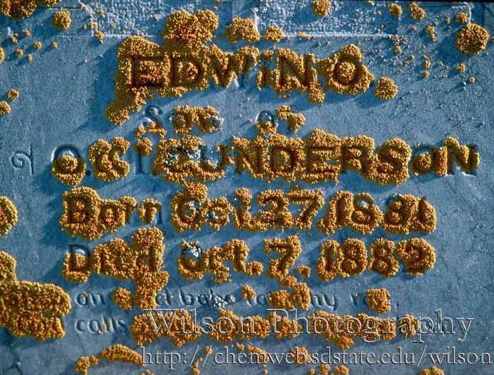 description = The tombstone of Edwin Gunderson, age 11 months, beset by lichen.
