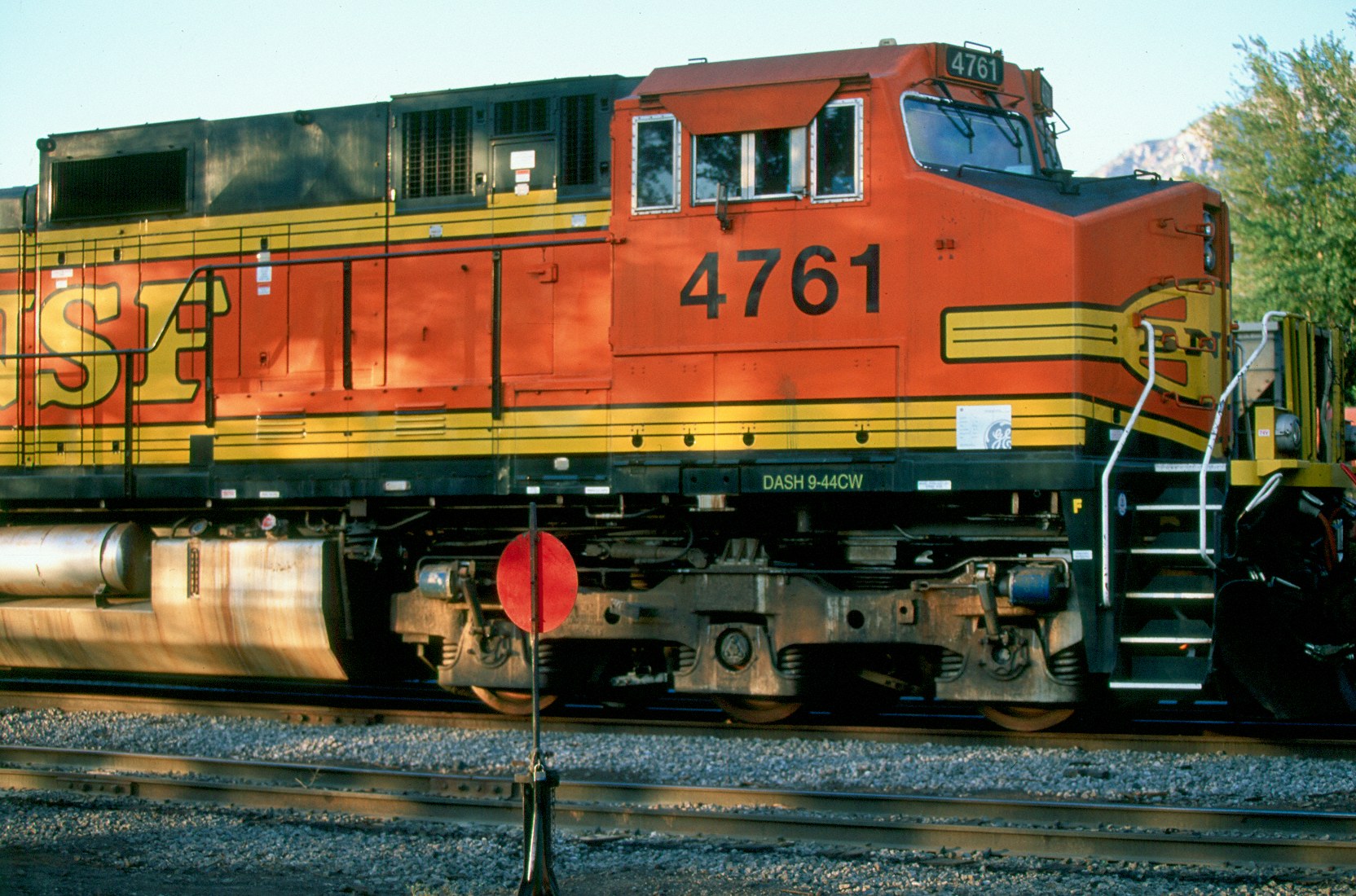 description = BNSF GE Dash-9 engines (4400 horsepower, generating over 4 MW), probably bought and waiting for a repaint and refit.