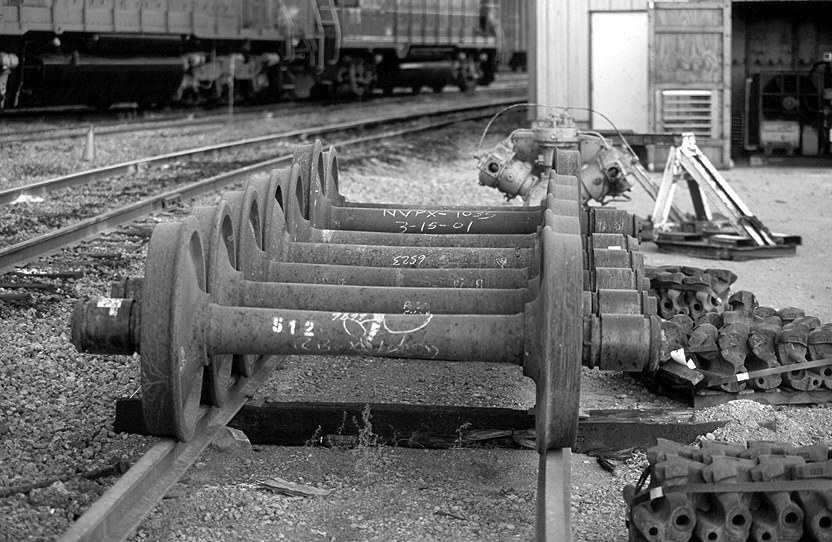 description = New wheels for unpowered trucks. Spare air compressors in the background.
