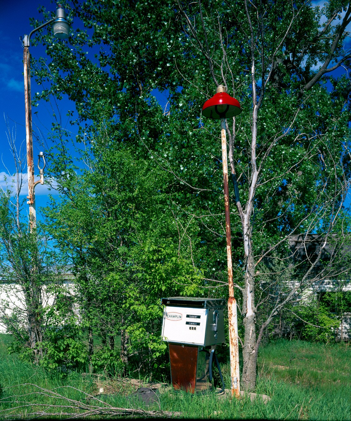 description = Old gas pump and lamp, spring