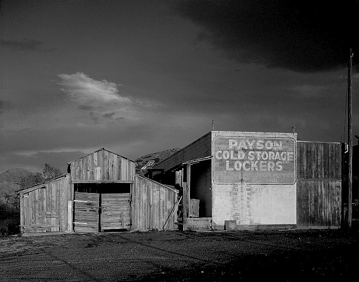 description = Payson Cold Storage Lockers (abandoned), sunset.