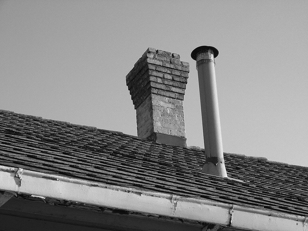 description = Detail, chimneys on station roof.