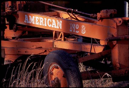 "I guess by now you've seen I like the play of deep shadow on objects illuminated by the evening sun. This is an old road grader (used mostly for snow removal, I suspect). Some depth-of-field problems, but nice colors."