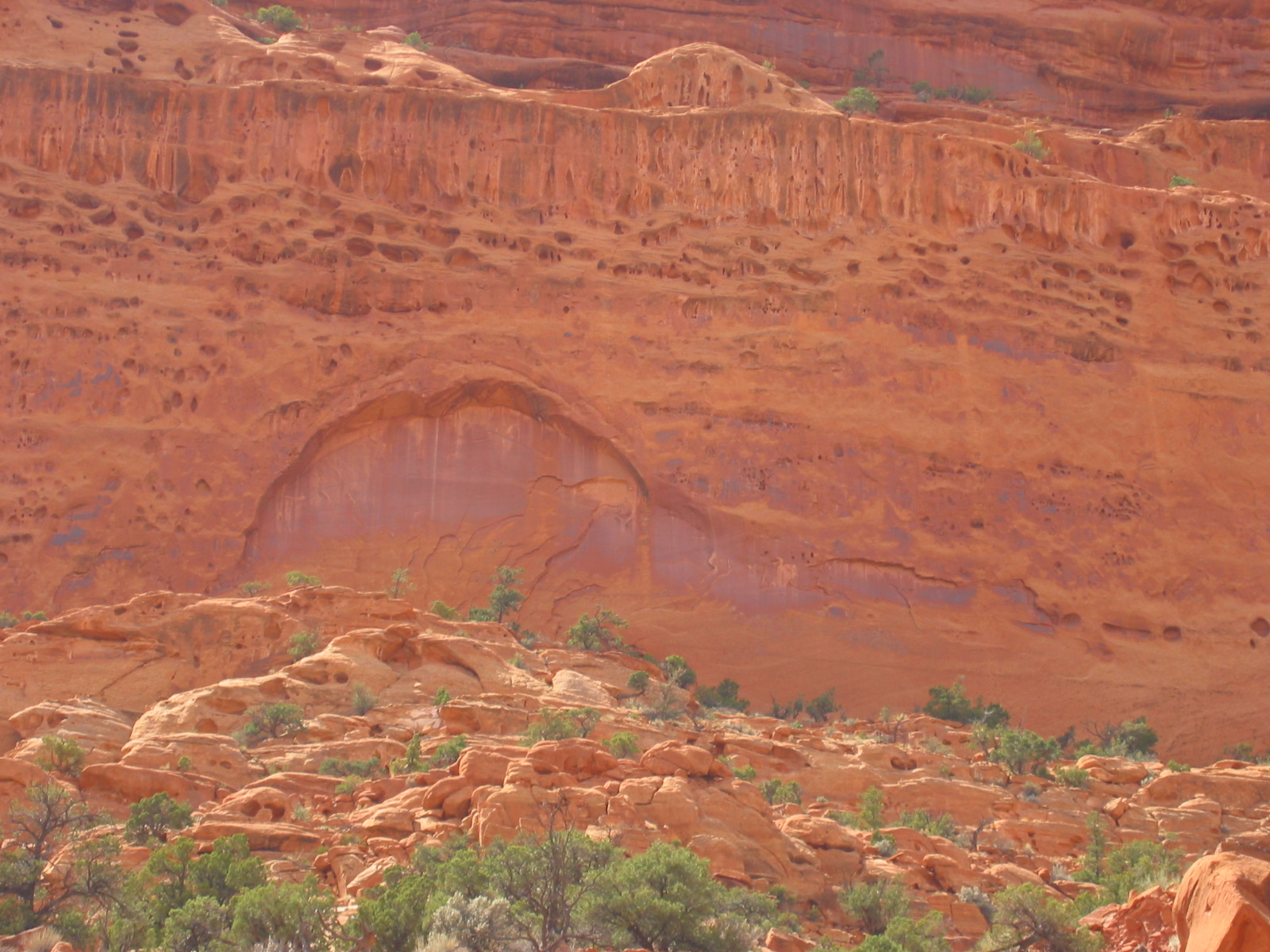 description = Wall, swiss cheese holes carved by the stream
