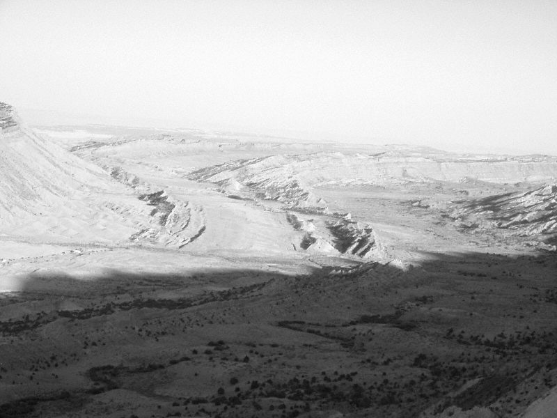 description = The Southern end of the grand gulch. These are the edges of upturned layers of rock, the upper layers have eroded long ago, leaving only a small ridge. I'm standing at the Strike Valley overlook, perched atop a 45 degree layer of Navajo sandstone.