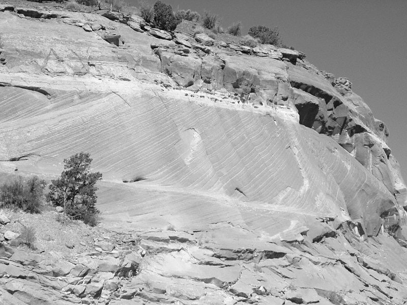 description = Cross-bedding on the sandstone, demonstrating the dune origin of this sand