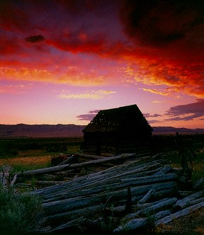 description = Barn, sunset