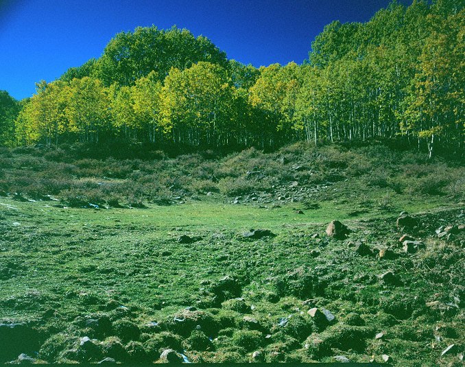 description = Aspen, green meadow 90 deg from sun