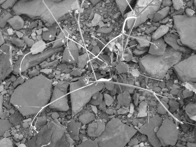description = Desert Trumpet. The tall-standing stalk stays until trampled, leaving the desert scattered with veritcal pods with "feelers"