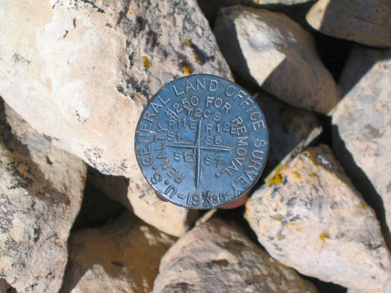 description = Survey marker, showing the intersection of four sections. These appear all over the swell.