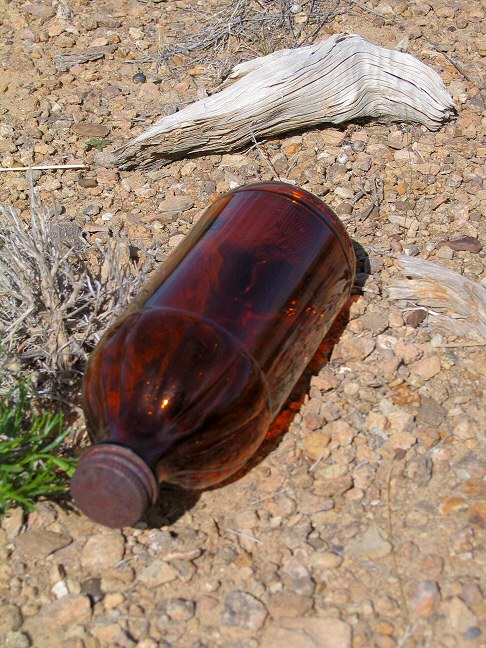 description = I found a worker campsite atop Green Vein Mesa. This was a syrup bottle, sith a little syrup still inside. Also in the area: baby bottles, coffee cans, children's toys.