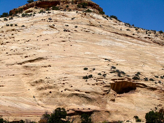 description = Navajo sandstone butte showing the aolian (windborne) corssbedding