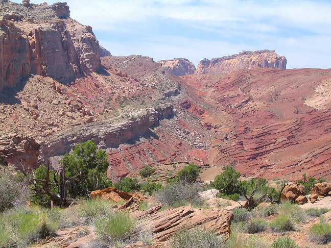 description = The Behind the Reef road climbs the Kayenta ledge high above the red Moenkopi ledges of the Cistern Canyon