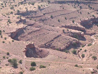 description = A jeep trail in the foreground, and a single-track dropping into the canyon east of Flat Top.