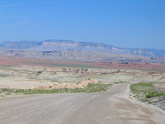 description = Moore Road: gypsum mine, Red Ledges, Coal Cliffs (Molen Reef), cliffs of the Wasatch Pleatau above Ferron