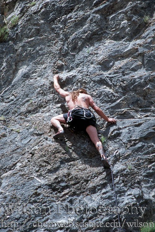 description = Brian, and others, climbing on a nice set of routes just below Ophir, Utah