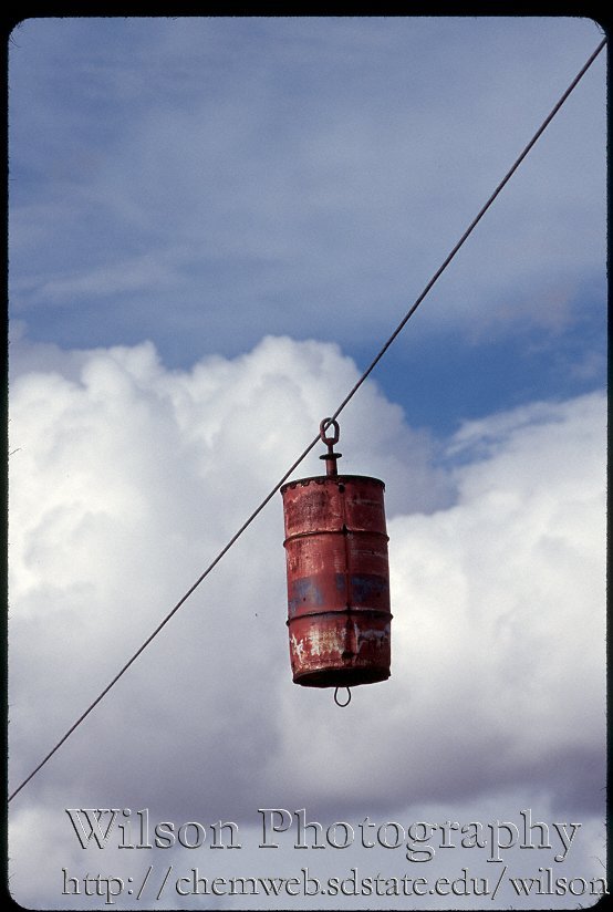 description = A barrel on a line. I asked some kids, they said the fire department uses it for practice. It's in the Elkton city park