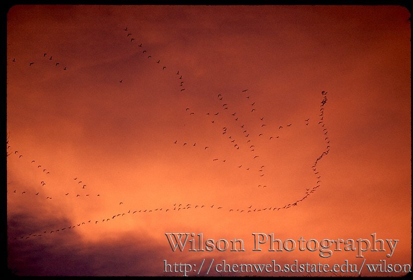description = Geese at sunset.