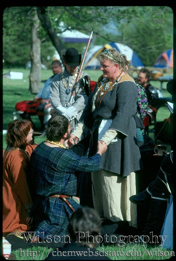 people = Her Highness, Princess Kelinda Garrett, thanking chirgeons Lady Sian verch Gruffydd and Alexander for so ably taking care of everybody.