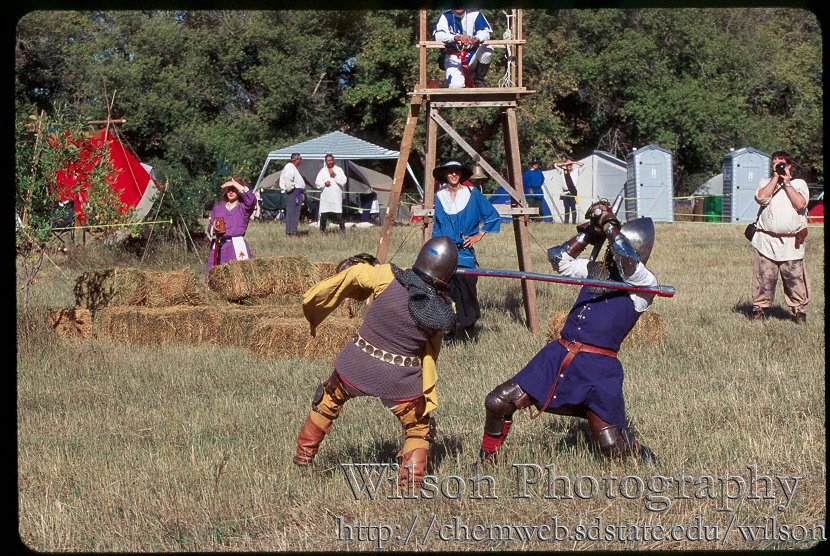 people = Here are Sir Vaclav Semjaka (left in purple and gold) and his squire, Lord Faolan MacThighearnan, both of Lonely Tower.