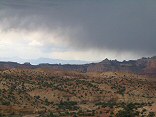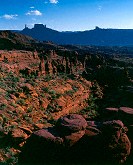 Two other hikers on the trail, giving a sence of the size of these sandstone formations. He is standing on a very small rise in comparison to the towers. Fisher Towers |