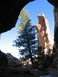 Broken Cross and Douglass Fir, as seen from the entrance of Honeymoon Cave Swaysey's Cabin, Head of Sinbad San Rafael Swell |