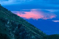 Pink alpenglow on clouds, mountains. East of Spanish Fork UT |