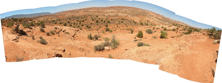 Panorama along the trail leading down to the Dry Fork of the Coyote (below are the Narrows, and three slot canyons) |