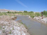 The ford across Muddy Creek. The Hunt's drove this road in from a mining road to the south. Vehicles cross from the lower left to the upper left by way of the kiosk. |