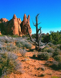 Juniper, the pink-orange sandstone of the towers Fisher Towers BLM area, off S-128 |