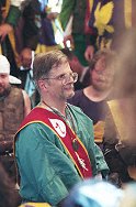 With the red sash, His Lordship Owain ap Bleddyn y Llwyd (from Mag Mor, Kingdom Chirugeon of Calontir). See 24Sep00C for his appearance in Calontir Court. |