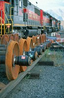 New wheels for unpowered trucks. Spare air compressors in the background. |