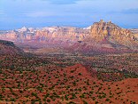 From the Behind the Reef Road, the red Moenkopi shleves, and beyond that the Kaibab limestone benches of the Swell interior |