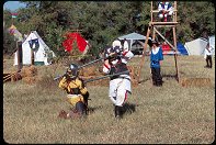 Jarl Sir Thjothrekr standing, Viscount Sir Ternon kneeling. |