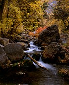 Snow and ice over a tributary of the Provo River, Provo Canyon, Utah. |